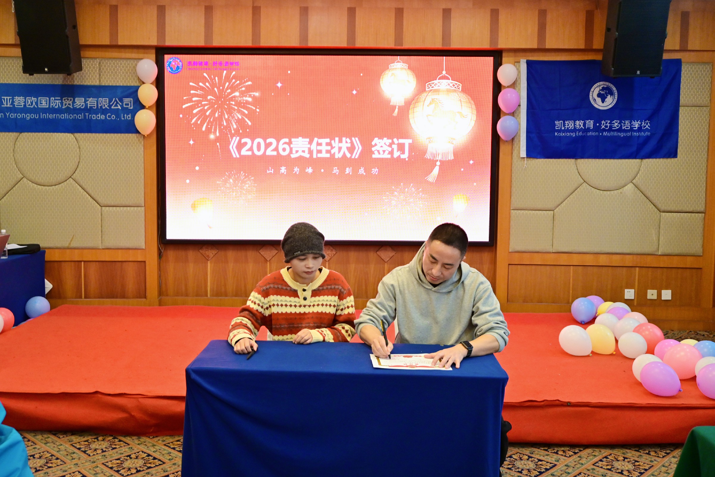 会议进入庄重而热烈的 “2026年度目标责任状签订仪式”。各部门负责人依次与曾校签署责任状。落笔之间,是沉甸甸的责任,更是义无反顾的担当。这不仅是一纸协议,更是向公司、向团队立下的军令状,凝聚了全员决胜2026的磅礴力量。